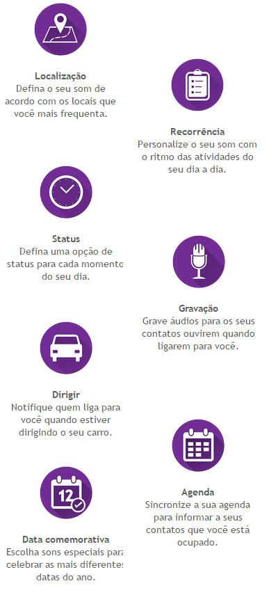 Também é possível gravar mensagens com a sua própria voz, e até programar cada uma para ser reproduzida em um horário específico, como entre às 19h e 22h, de segunda à sexta-feira, quando estiver na faculdade, por exemplo. Com a ajuda da agenda de compromissos, o aplicativo vai entender que você está numa reunião, se for o caso, e direcionar as chamadas recebidas para a mensagem de voz, sem custo nenhum para o ouvinte. Isso evita que a pessoa torne a ligar em um momento inoportuno.
