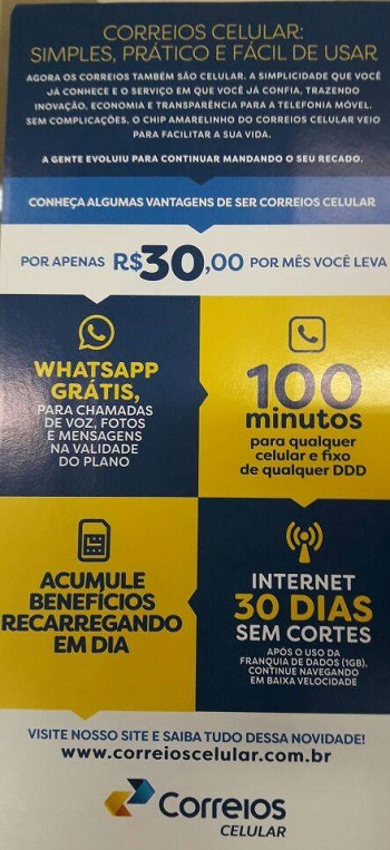 Supostas imagens do que seria um encarte de vendas da operadora começaram a circular na internet. Nele aparece uma provável promoção da Correios Celular, onde o cliente que pagar R$ 30 por mês vai receber: