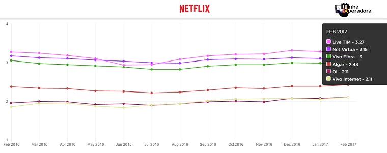 Como é de costume, a Netflix disponibilizou mais um ranking mensal com as operadoras de banda larga fixa mais rápidas do Brasil. Em fevereiro, a internet mais rápida registrada pelos servidores do serviço de streaming foi a TIM Live, com 3,27 Mbps de velocidade média (-0,61% em relação a janeiro).