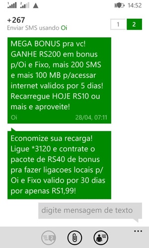 A oferta é enviada por SMS ao cliente que deixou de recarregar durante meses seguidos, e como forma de incentiva-lo a colocar créditos, oferece R$ 10.000 de bônus para usar em ligações locais para celular Oi e fixo de qualquer operadora, válidos por 7 dias.