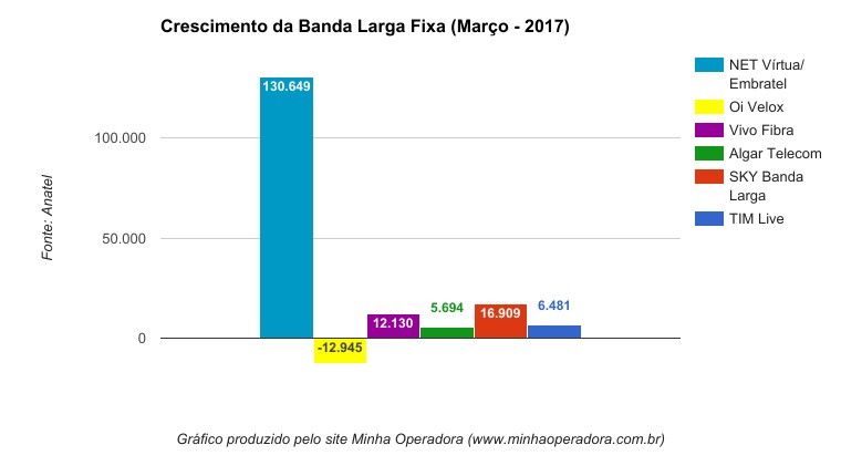 desempenho do setor de internet fixa durante o mês de março de 2017. Segundo