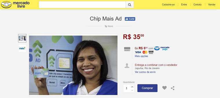 Chips da Mais AD foram vendidos no Mercado Livre até 10 vezes mais caro do que o valor normal de mercado, com a promessa de tráfego de dados móveis sem limite.