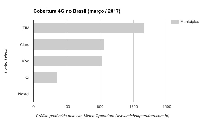 Hoje, a TIM possui a maior cobertura 4G do Brasil, atendendo a 1.322 municípios e 67,3% da população. A Claro tem a segunda maior cobertura, com sinal em 851 municípios e 64,5% da população. Em seguida vem a Vivo, com 820 municípios, que representam 64,5% da população.