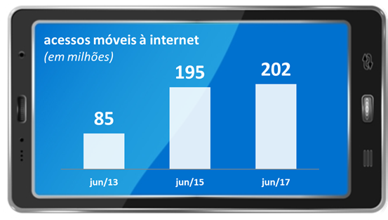 Ao considerar os acessos brasileiros das redes de internet fixa e móvel, os dados de junho registram um total de 229,6 milhões. O fixo, que cresceu 5% em relação ao mês de junho de 2016, teve 1,3 milhão de novos acessos, contabilizando um total de 27,5 milhões de acessos fixos de internet.