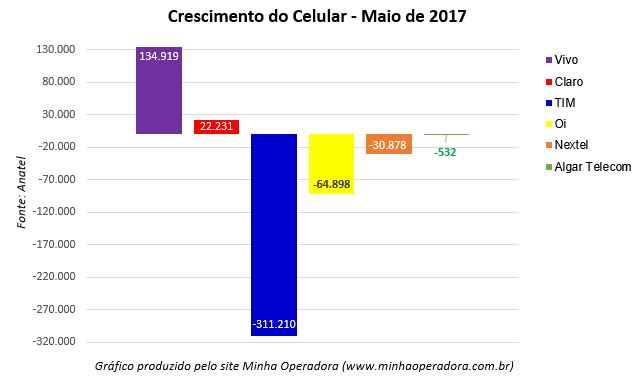 Mas ela não foi a única a apresentar resultados negativos. O quinto mês do ano também pegou as operadoras Oi (-64.898), Nextel (-30.878) e Algar Telecom (-532) de surpresa. Oi e Nextel, que no último mês estavam ganhando assinantes, contribuíram, junto com a TIM, para os números finais do setor: a perda de 217 mil linhas móveis somente em maio no Brasil (-0,09%).