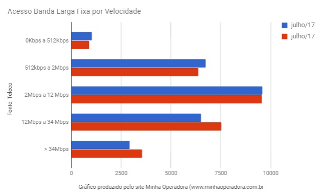 As conexões com velocidade na faixa entre 12 e 34 Mbps cresceram 2,35% em 12 meses, com um total de 7.529 milhões de acessos. O número de acessos de conexões acima de 34 Mbps também subiu, chegando a 3.551 milhões de acessos, um crescimento de 3,72% em 12 meses.