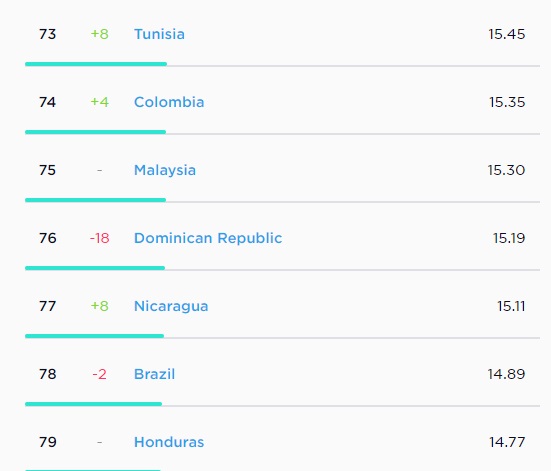 | Em índice global de internet, o país ocupa apenas a 78° posição com uma média de 14.89 Mbps de velocidade de conexão em internet móvel. |