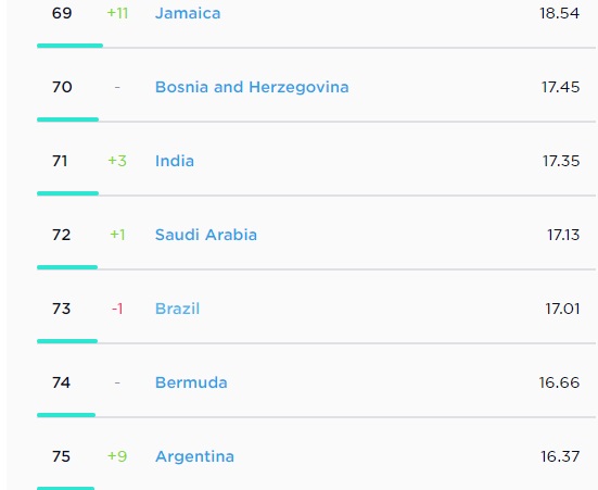 O site também disponibiliza um ranking com os resultados da banda larga fixa. Nesse serviço, o país está um pouco melhor e ocupa em 73° lugar com uma média de 17.01 Mbps de velocidade. O crescimento da velocidade média em relação a dezembro do ano passado também é maior, de acordo com o índice, a velocidade média da banda larga fixa brasileira cresceu 2.22 Mbps no período.