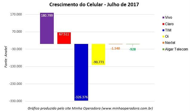 | Somente a Vivo e a Claro registraram saldo positivo de clientes na comparação entre junho e julho de 2017. |