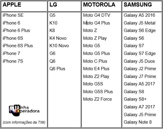 E a sua cidade, já está incluída na lista? E o seu aparelho? Veja nas tabelas abaixo:
