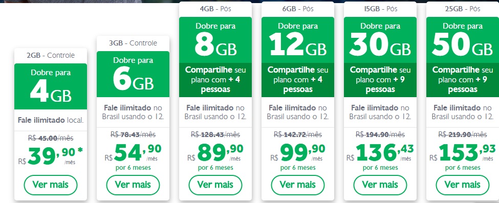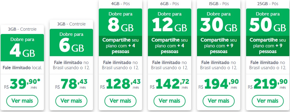 - Giga Pós 6 GB: R$ 99,90 por mês;