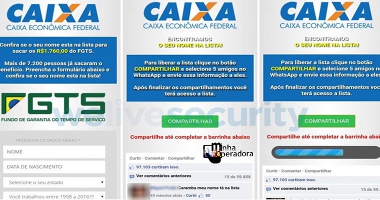 | Novo golpe no aplicativo promete pagamento retroativo do FGTS, no valor de R$ 1.760. |