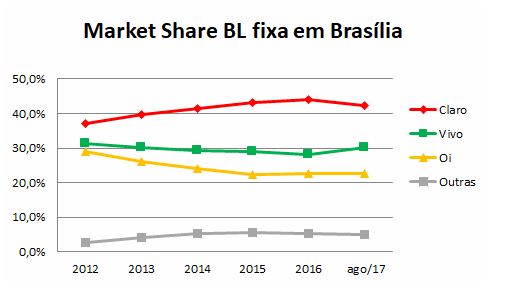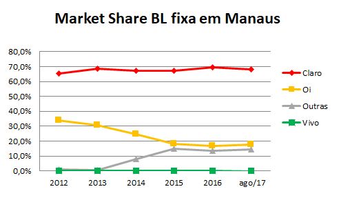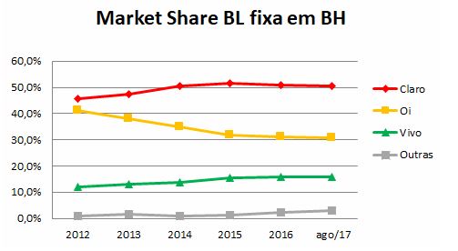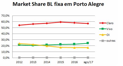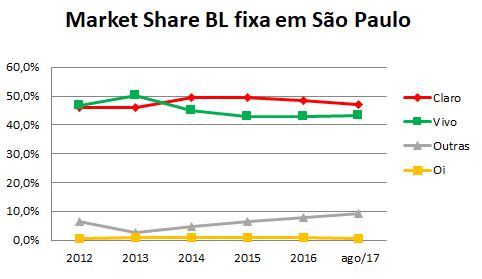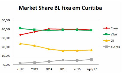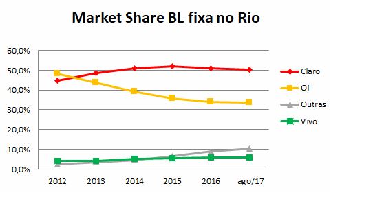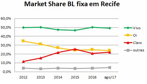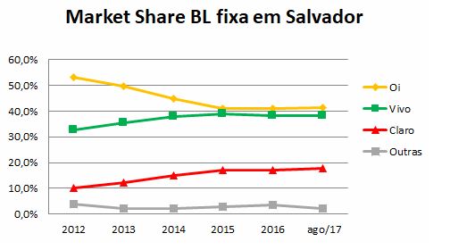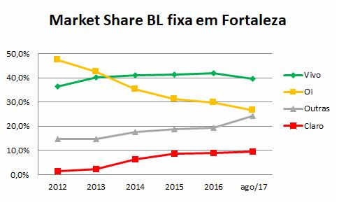 Além da Vivo fortalecer seu market share, a Oi vem perdendo o seu, podendo ser ultrapassada pelas outras operadoras em Fortaleza, como a Videomar, com 12% de market share, e a SKY, com 3,7%.