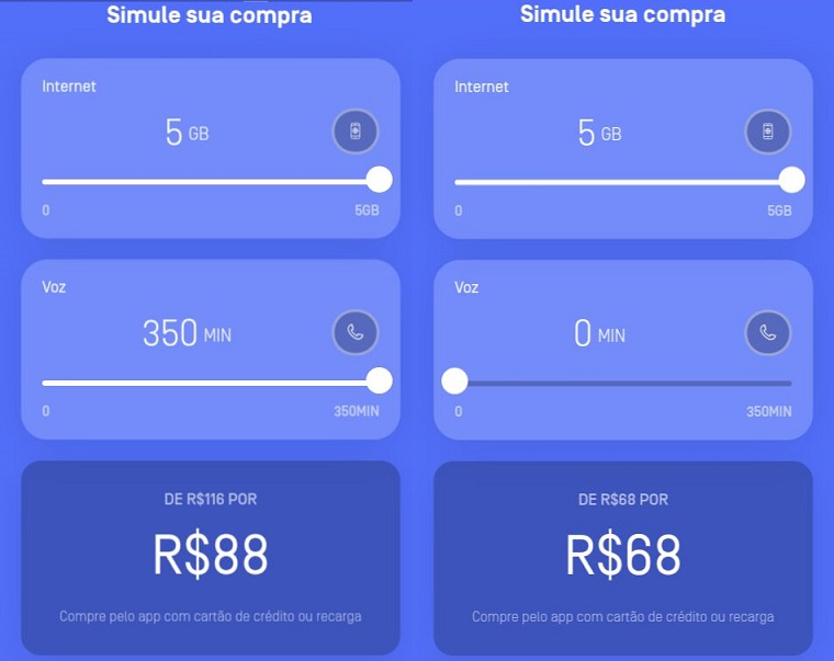O pacote de minutos e internet custa a partir de R$ 25, mas o usuário pode optar por escolher apenas dados (por R$ 23) ou só minutos (por R$ 10).