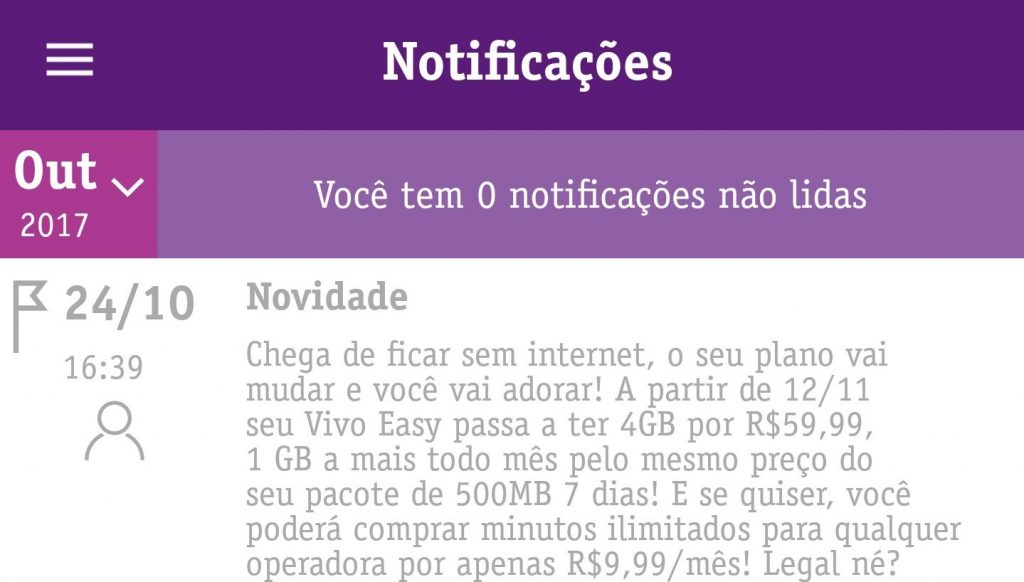 Desde que foi lançado, em novembro de 2015, o preço do Vivo Easy ainda não havia aumentado, apenas o pacote de dados, que, de 1GB de início, passou para 1,5GB, 3GB e, agora, 4GB por mês. No entanto, esta é a primeira vez que o cliente não vai precisar pagar caro pelas chamadas para outras operadoras ou pela franquia adicional.