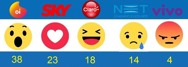 Em nossa pesquisa no Facebook, a Vivo TV continuou com a última colocação, conseguindo somente 4 votos. Agora, a líder foi a Oi TV (38 votos). A SKY ficou em segundo lugar, com 23 votos; enquanto a Claro TV completou o pódio, atingindo 18 votos e NET 14.