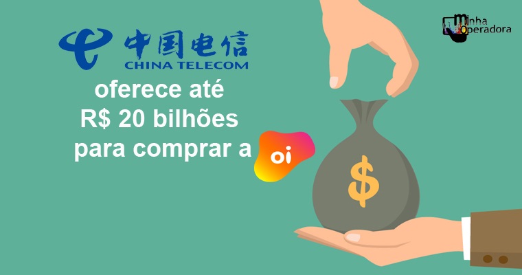 De acordo com informações do jornal O Globo, a China Telecom, uma das maiores operadoras móveis do mundo, apresentou uma proposta nesta quarta-feira, 1, de aporte de até R$ 20 bilhões na Oi. A proposta foi discutida com representantes da Anatel e da Advocacia-Geral da União (AGU).