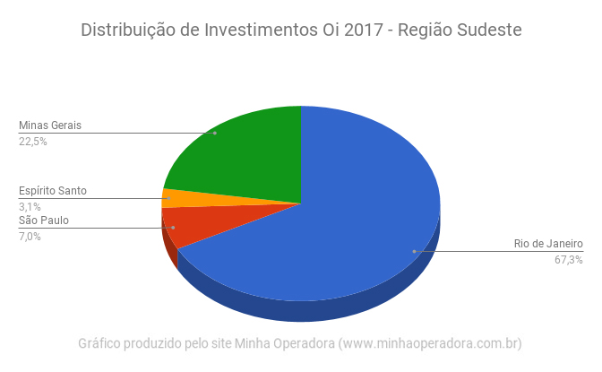 Na comparação por regiões mostradas acima, é possível perceber que a região Sudeste angariou a maior parte dos investimentos, recebendo mais R$ 1,2 bilhão de investimentos. O destaque vai para o Rio de Janeiro, que recebeu R$ 880,3 milhões, sendo o estado em que a Oi mais investiu no Brasil até setembro deste ano.