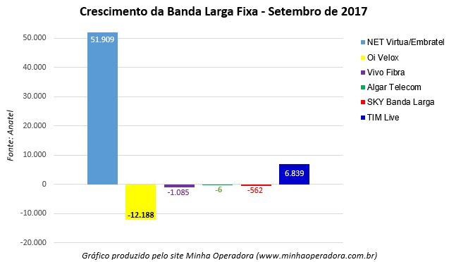 | Setor de banda larga fixa cresceu 0,40% no mês de setembro, mas grandes operadoras, como Vivo, Oi, Algar Telecom e SKY registraram queda em suas bases. |