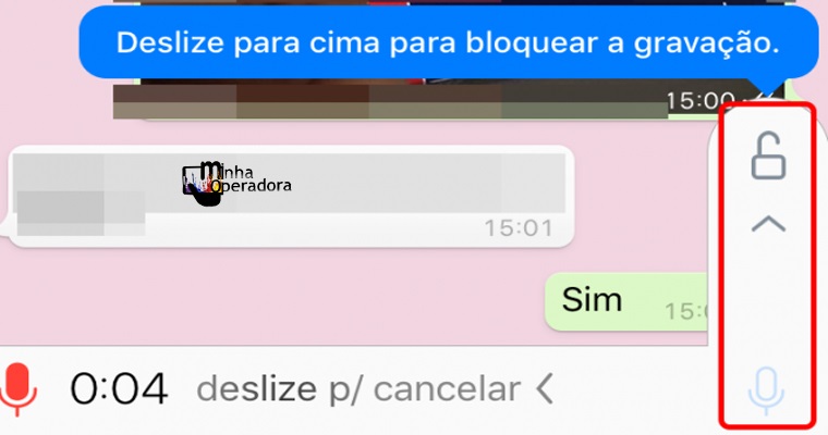 Enviar um áudio no aplicativo ficou mais prático com a atualização. Agora, os usuários devem iniciar a gravação tocando no ícone do microfone e logo depois deslizar o dedo para cima em direção ao cadeado, para trancar o áudio. Para terminar, basta tocar no botão de enviar. Bloqueando a gravação no cadeado, o usuário pode falar sem ter de ficar pressionando a tela do aparelho.
