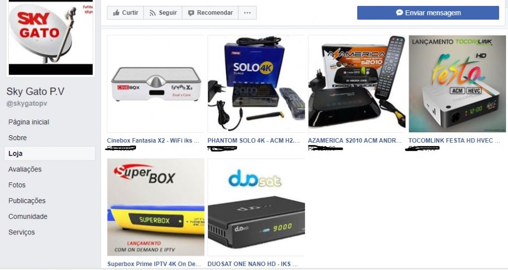 Existem inclusive páginas no Facebook para venda dos decodificadores, como esta: