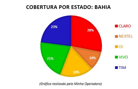 Em terceiro lugar aparece a Claro, que já ultrapassou a TIM em número de linhas móveis, mas ainda possui menos infraestrutura, uma vez que é líder de cobertura em apenas quatro estados, incluindo a Bahia, Goiás, Rondônia e Tocantins.