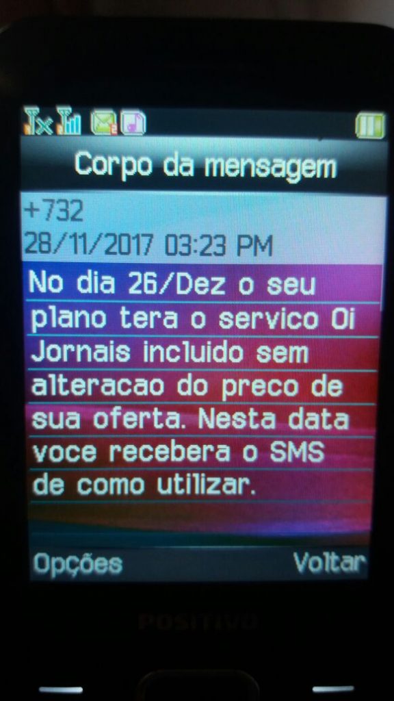 A Oi lançará em breve um novo serviço aos seus clientes de celular: o “Oi Jornais“. De acordo com a operadora em comunicado enviado por SMS, o lançamento acontecerá no dia 26 de dezembro, quando serão divulgados os detalhes do pacote.
