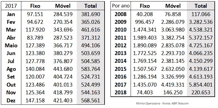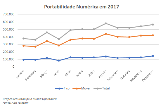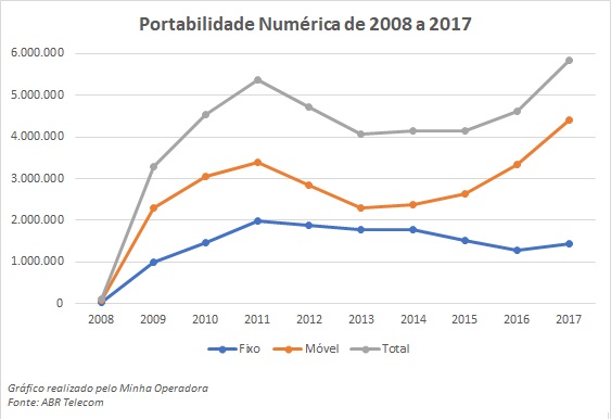 Este é o recorde desde que a portabilidade numérica foi anunciada em 2008, o que faz o serviço chegar a uma década de existência. Em 2017, a maior parte dessa troca está relacionada aos números móveis, de celular, que totalizaram 4.419.331, enquanto do fixo foram 1.435.070.