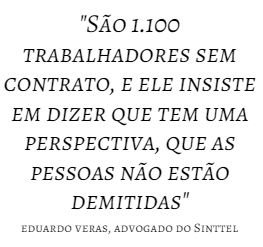 Acontece que, apesar de alguns dos 1.100 trabalhadores voltarem à empresa, nenhum deles teria como, de fato, trabalhar. Por irregularidades e denúncias constantes contra a terceirizada, a Vivo alertou, no 2º semestre, que estaria encerrando seu contrato com a Teleinformações. E como a operadora era a única com contrato até então, os funcionários não teriam mais o que fazer na empresa – provavelmente, serão demitidos.