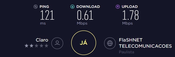 O Minha Operadora testou a internet 4G da Claro na cidade do Paulista, região metropolitana do Recife, no momento em que recebíamos as queixas. A velocidade foi deprimente: 610 Kbps de velocidade.