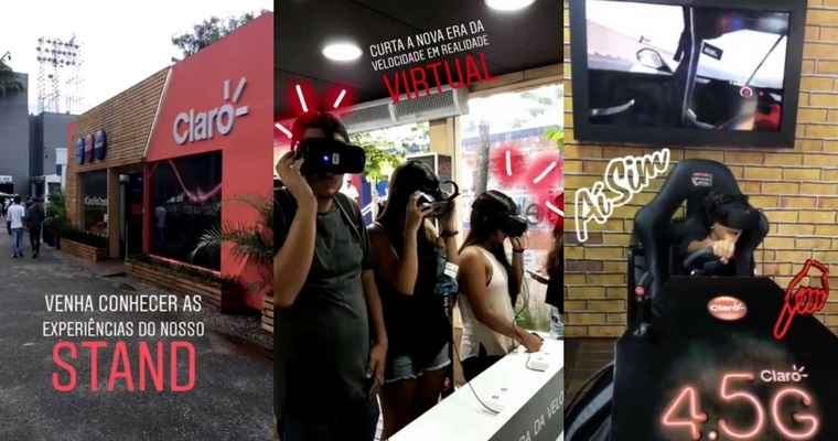| Operadora aproveitou seu stand para interagir com ídolos, crianças e oferecer testes de jogos e velocidade com a tecnologia 4,5G. |