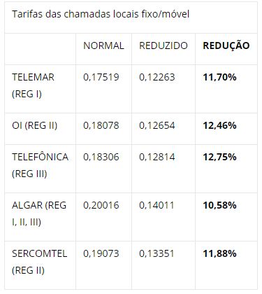 Mas nem todas operadoras se enquadram nessa redução de tarifas. As mudanças valerão para as ligações originadas pelo fixo da Oi, Vivo, CTBC, Embratel e Sercomtel. O preço médio das ligações locais de telefone fixo para celular vai passar de R$ 0,18 para R$ 0,12, sem imposto.