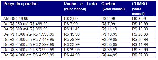 Os valores dos pacotes variam de R$ 2,99 a R$ 57,99 por mês, de acordo com o valor do aparelho e a modalidade escolhida. Não é preciso fazer um contrato de fidelização, sendo possível cancelar a proteção a qualquer momento sem nenhuma multa.