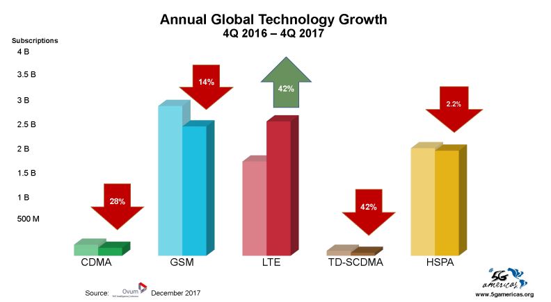 Os dados mostraram que o 4G alcançou 35% do market share global em dezembro de 2017, um crescimento de 42% em 12 meses. No final de 2016, eram 2 bilhões de aparelhos conectados, mas 2017 fechou o ano com 2,8 bilhões de conexões.