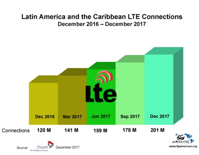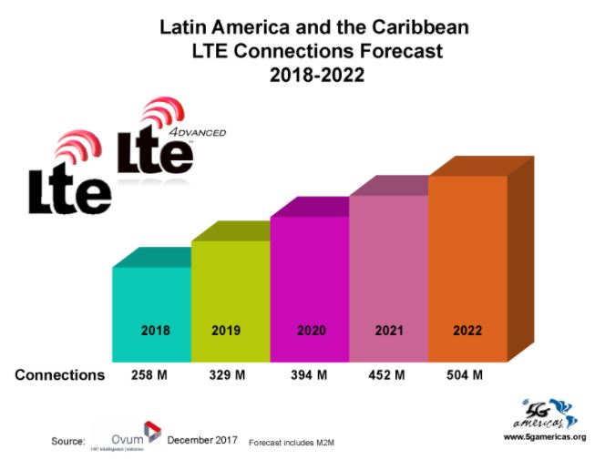 Em 2018, a expectativa é de um total de 258 milhões de conexões em toda a América Latina e, em 2022, 504 milhões no 4G. Também neste ano alguns testes com 5G devem ser feitos na região.