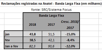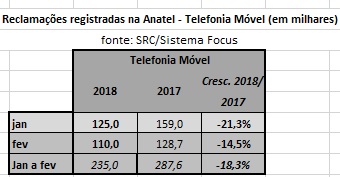 Apesar disso, o mês de fevereiro de 2018 registrou uma queda de -14,5% no número de queixas em relação ao mesmo mês do ano passado. As reclamações caíram de 270 mil para 231 mil.