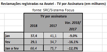 A TV por Assinatura teve uma queda de 16,1% no número de reinvindicações realizadas na Anatel.
