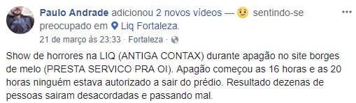 Na última quarta-feira (21), moradores de vários estados da região Norte e Nordeste se surpreenderam com um apagão que ocorreu no país, devido a uma falha técnica da BMTE. Em Fortaleza, uma denúncia envolvendo o apagão e a antiga empresa de telemarketing Contax, atual LIQ, preocupou funcionários.