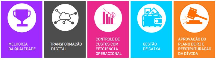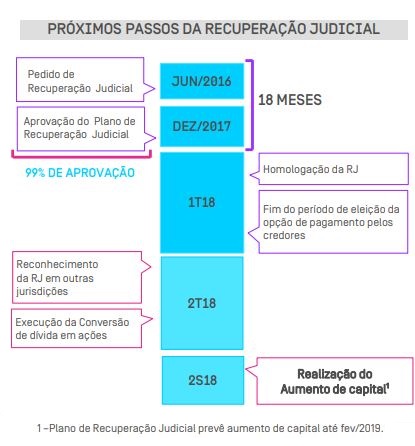 Quanto aos próximos passos da recuperação judicial – que teve início em junho de 2016 -, temos uma imagem enviada pela Oi que explica quais serão as ações, que devem permitir o início do novo ciclo de crescimento sustentável, como afirmou Eurico Teles.