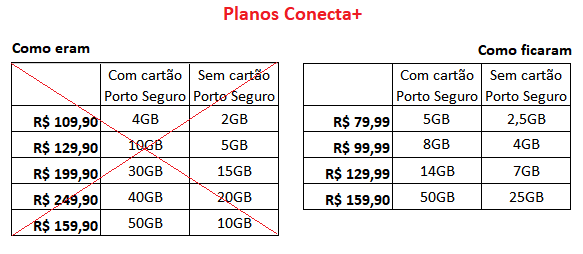 O plano mais barato, que antes custava R$ 109,90, agora sai por R$ 79,99. O mais caro, que antes cobrava R$ 249,90 para 20GB mensais, agora sai por R$ 159,99 para 25GB ou 50GB para clientes do grupo.