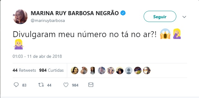 O programa Tá no Ar, da Rede Globo, divulgou, na última terça-feira (10), um número de telefone que supostamente seria da atriz Marina Ruy Barbosa.