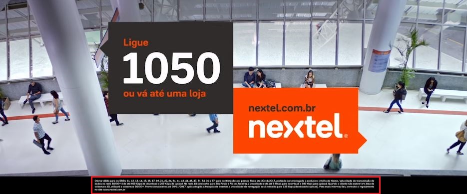 Em defesa, a Nextel disse que a promessa é verdadeira e que coloca um lettering explicativo na oferta, para que todos estejam cientes da mudança quando atingida a franquia.