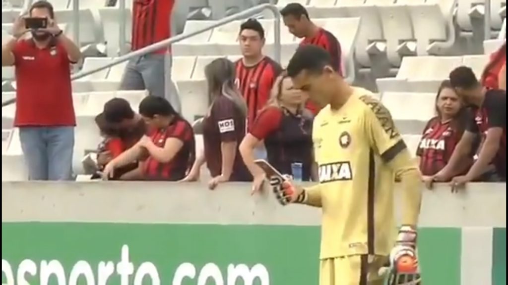 Uma cena inusitada chamou a atenção do público minutos antes da partida entre Atlético-PR e Atlético-MG, no último domingo (13). O goleiro Santos, do time paranaense, estava mexendo no celular dentro do gramado momentos antes da bola rolar.