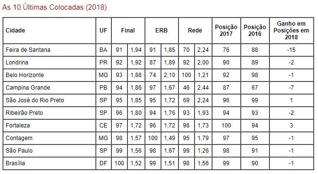 O ranking foi realizado pelo Teleco e divulgado na sessão temática “Desafios da Ampliação da Infraestrutura e Serviços de Banda Larga”, realizada na última terça-feira (22), no evento Painel Telebrasil 2018.