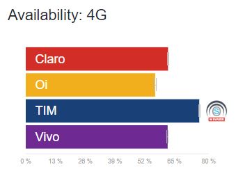 Mas quando o assunto é cobertura 4G, quem vence no Brasil é a operadora TIM, que já chega em 75,87% da população, de acordo com os testes de disponibilidade de sinal da OpenSignal.