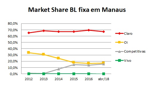 Na capital do Amazonas, a Claro é líder absoluta, com 67,3% de market share.