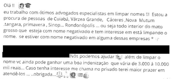 Acontece que o cliente também fora atraído por um advogado que sequer conhecia pessoalmente, e apenas conversava por WhatsApp. Ele dizia que limpava o nome de clientes no caso de falta de pagamento para algumas empresas, inclusive as de telefonia, mas não esclarecia exatamente como.