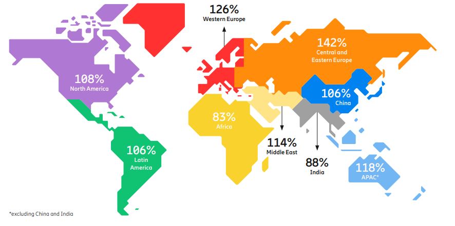 Em vários países, o número de assinaturas móveis ultrapassa a população. Isso pode acontecer muito pelos chips contratados, mas que ficam inativos depois. É por este motivo que, hoje, existem ‘apenas’ cerca de 5,3 bilhões de clientes de telefonia móvel para as 7,9 bilhões de assinaturas.