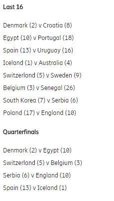 A empresa dividiu os mesmos 32 países nos oito grupos da Copa para ver quais dois em cada grupo passariam para a próxima fase.