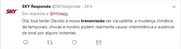 Os clientes da SKY também têm reclamado de queda frequente no sinal da operadora, principalmente em dias de chuva.